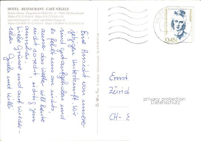 72135877 alte Postkarte Hoechenschwand Schwarzwald BW Hotel Restaurant Cafe Naegele Gartenterrasse postalisch gelaufen Erhaltung siehe scans KatCode: 11110008337051