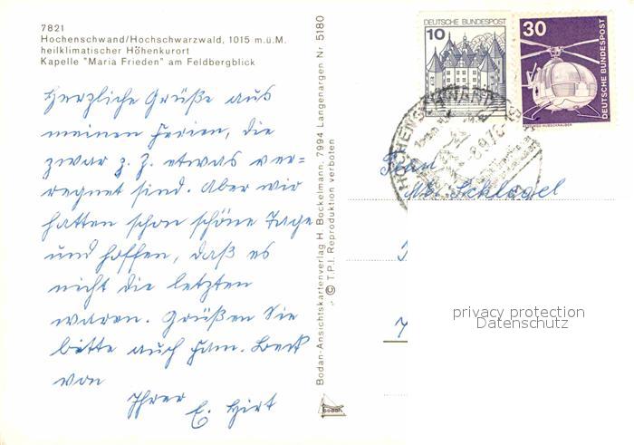 72831900 alte Postkarte Hoechenschwand Schwarzwald BW Kapelle Maria Frieden am Feldbergblick Kurort Schwarzwald postalisch gelaufen Erhaltung siehe scans [FriedD77] KatCode: 11110008337051