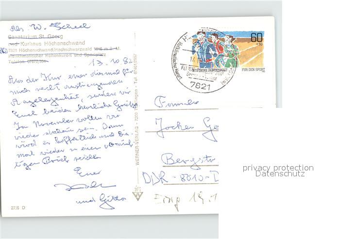 72390029 alte Postkarte Hoechenschwand Schwarzwald BW Kurhaus postalisch gelaufen Erhaltung siehe scans KatCode: 11110008337051