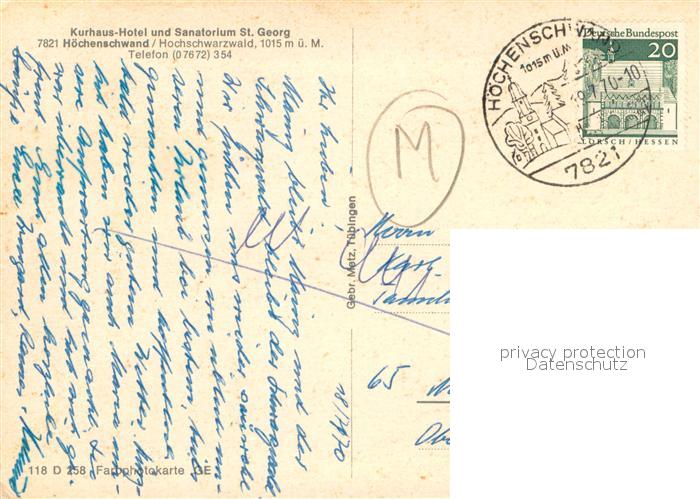 73719148 Hoechenschwand Schwarzwald BW Kurhaus Hotel und Sanatorium St Georg Fliegeraufnahme postalisch gelaufen Erhaltung siehe scans [WerneD78] alte Postkarte Wern Katcode 11110008337051