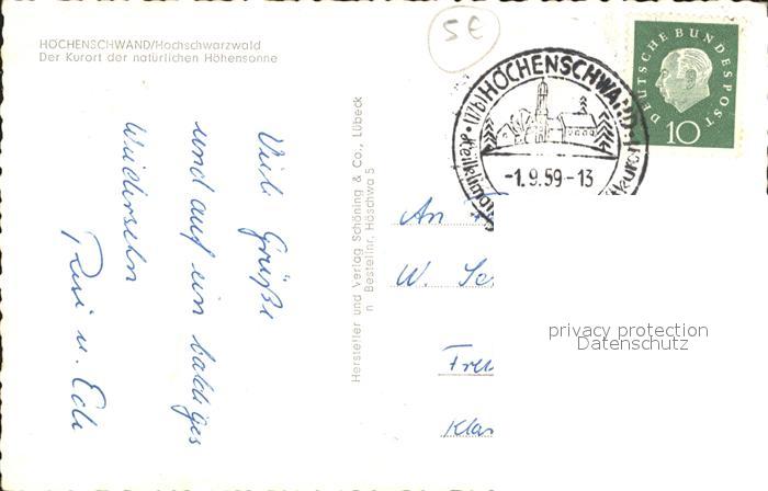 72023574 alte Postkarte Hoechenschwand Schwarzwald BW Kurhaus Waldschwimmbad Tennisplatz Kirche postalisch gelaufen Erhaltung siehe scans KatCode: 11110008337051
