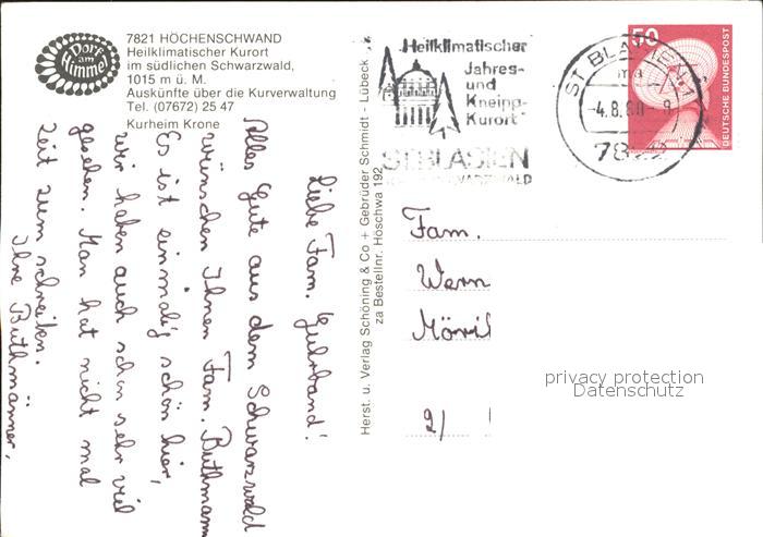 72277244 alte Postkarte Hoechenschwand Schwarzwald BW Kurheim Krone postalisch gelaufen Erhaltung siehe scans KatCode: 11110008337051