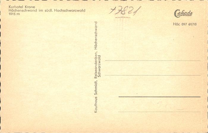 41391553 Hoechenschwand Schwarzwald BW Kurhotel Krone postalisch nicht gelaufen gute Erhaltung Alte Ansichtskarte Postkarte hz_W Katcode 11110008337051