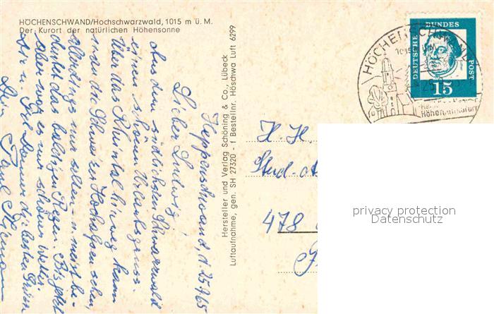 72822436 alte Postkarte Hoechenschwand Schwarzwald BW Kurort mit Alpenkette Fliegeraufnahme postalisch gelaufen Erhaltung siehe scans [FriedD77] KatCode: 11110008337051