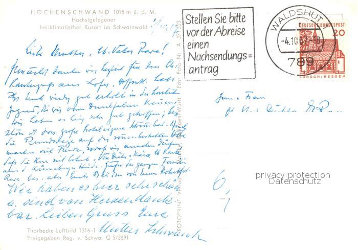 72941933 alte Postkarte Hoechenschwand Schwarzwald BW Kurort Schwarzwald Fliegeraufnahme postalisch gelaufen Erhaltung siehe scans [FriedD77] KatCode: 11110008337051