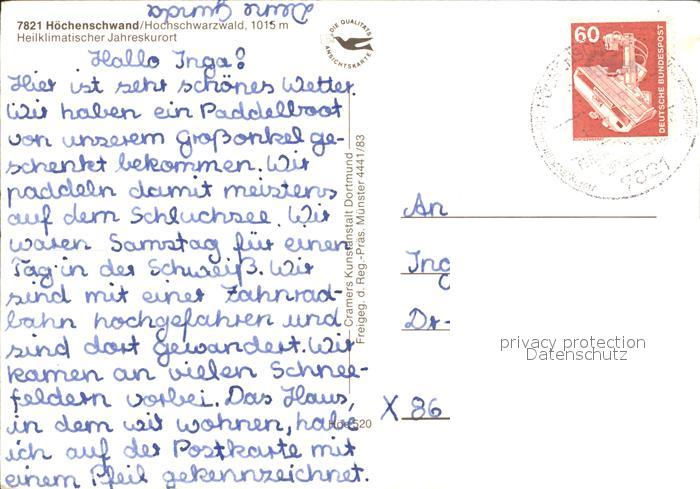 72467653 alte Postkarte Hoechenschwand Schwarzwald BW Luftbild postalisch gelaufen Erhaltung siehe scans KatCode: 11110008337051