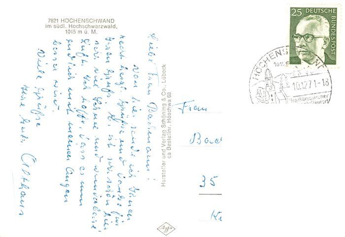73907386 Hoechenschwand Schwarzwald BW Ortsansichten im Winter postalisch gelaufen Erhaltung siehe scans [WerneD78] alte Postkarte Wern Katcode 11110008337051