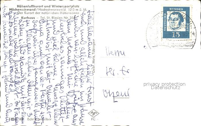 72089526 alte Postkarte Hoechenschwand Schwarzwald BW Panorama Kurhaus Teilansicht postalisch gelaufen Erhaltung siehe scans KatCode: 11110008337051
