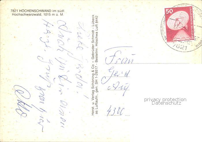 72135889 alte Postkarte Hoechenschwand Schwarzwald BW Panorama Nebelmeer Alpenkette postalisch gelaufen Erhaltung siehe scans KatCode: 11110008337051