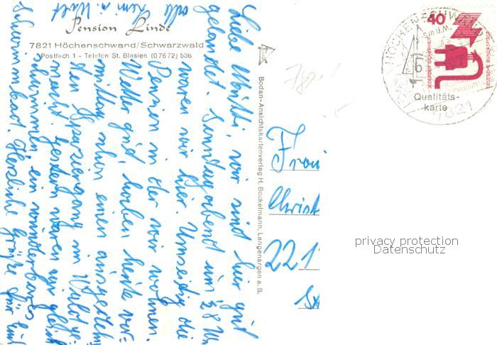 73863349 Hoechenschwand Schwarzwald BW Pension Linde postalisch gelaufen Erhaltung siehe scans [FriedD77] alte Postkarte Frie Katcode 11110008337051