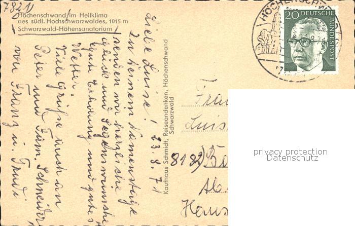 72246891 alte Postkarte Hoechenschwand Schwarzwald BW Schwarzwald Hoehensanatorium postalisch gelaufen Erhaltung siehe scans KatCode: 11110008337051