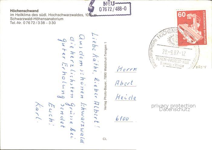 72062459 alte Postkarte Hoechenschwand Schwarzwald BW Schwarzwald-Hoehensanatorium postalisch gelaufen KatCode: 11110008337051