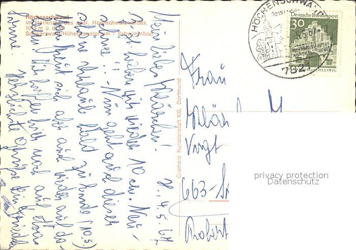 72108262 alte Postkarte Hoechenschwand Schwarzwald BW Schwarzwald Hoehensanatorium Schwimmbad postalisch gelaufen Erhaltung siehe scans KatCode: 11110008337051
