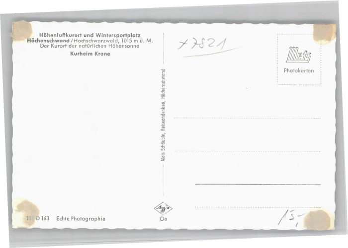40734848 Hoechenschwand Schwarzwald BW urheim Krone postalisch nicht gelaufen Alte Ansichtskarte Postkarte Katcode 11110008337051