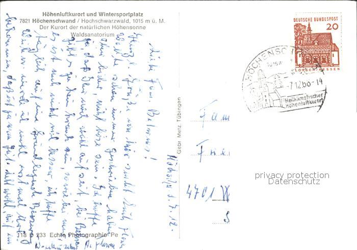 72024232 alte Postkarte Hoechenschwand Schwarzwald BW Waldsanatorium postalisch gelaufen Erhaltung siehe scans KatCode: 11110008337051