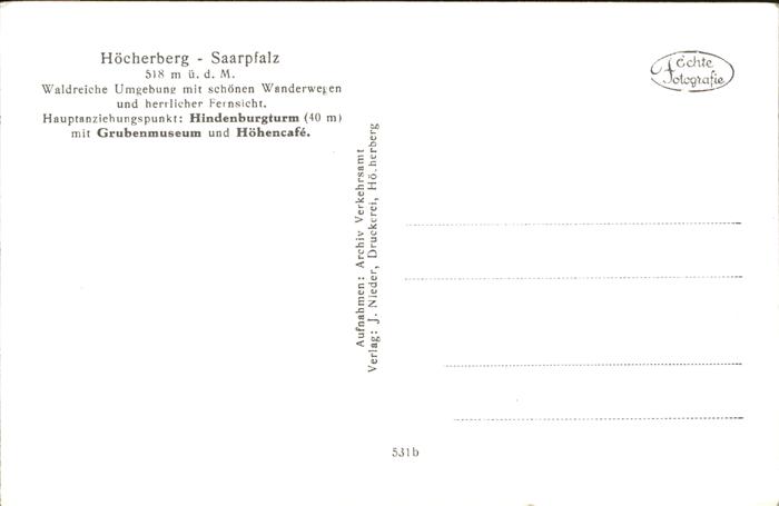 41326883 Hoecherberg Bexbach Hindenburgturm postalisch nicht gelaufen gute Erhaltung Alte Ansichtskarte Postkarte hz_F Katcode 11110010045111