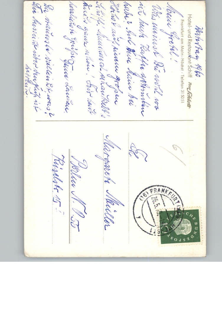 31141965 Hoechst Hotel Restaurant Peter Schlott postalisch nicht gelaufen KatCode: