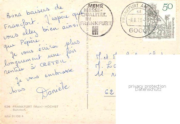 72615738 alte Postkarte Hoechst Main Bahnhof postalisch gelaufen Erhaltung siehe scans [WerneD78] KatCode: 11110006412000