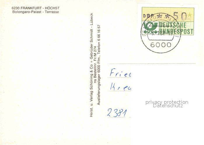 72793506 alte Postkarte Hoechst Main Bolongaro Palast Terrasse postalisch gelaufen Erhaltung siehe scans [FriedD77] KatCode: 11110006412000