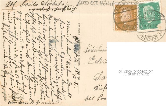 73706173 alte Postkarte Hoechst Main Mainpartie mit Kath. Kirche postalisch gelaufen Erhaltung siehe scans [LiesaD40] KatCode: 11110006412000