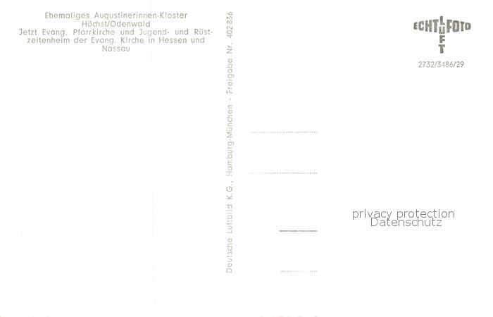 73830274 Hoechst Odenwald Ehem Augustinerinnen Kloster Fliegeraufnahme postalisch nicht gelaufen Erhaltung siehe scans [FriedD77] KatCode: 11110006437009