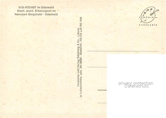 73648096 Hoechst Odenwald Erholungsort im Naturpark Bergstrasse Fliegeraufnahme postalisch nicht gelaufen Erhaltung siehe scans [FriedD77] KatCode: 11110006437009