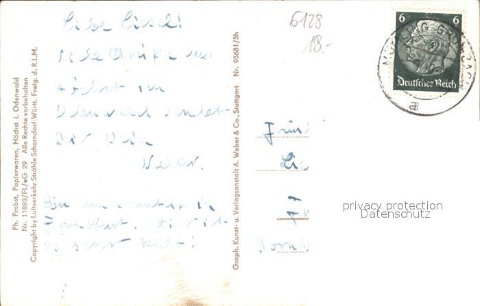 72102177 alte Postkarte Hoechst Odenwald Fliegeraufnahme postalisch gelaufen Erhaltung siehe scans KatCode: 11110006437009