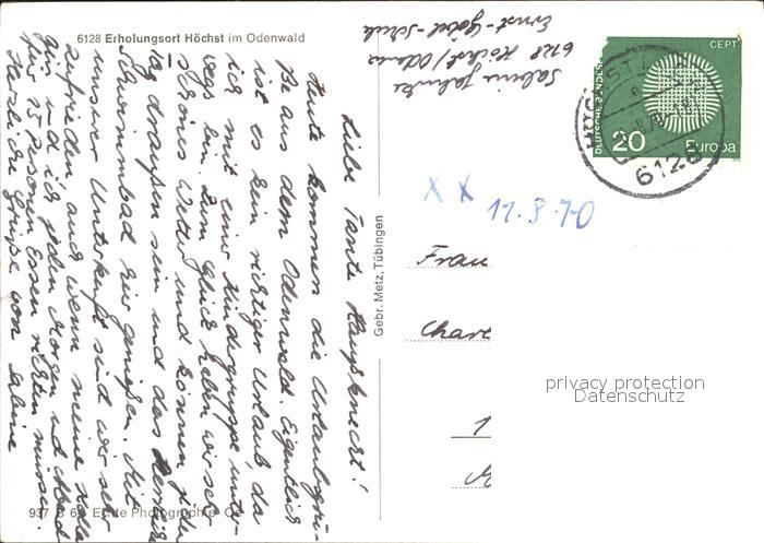 31731460 alte Postkarte Hoechst Odenwald Fliegeraufnahme postalisch gelaufen Erhaltung siehe scans KatCode: 11110006437009