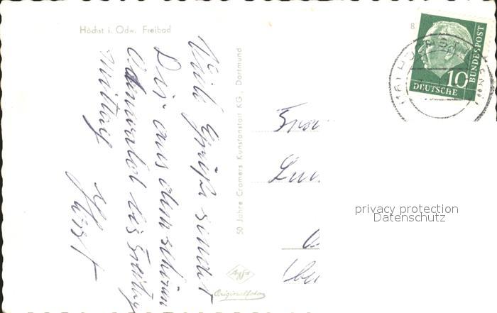 72250321 alte Postkarte Hoechst Odenwald Freibad postalisch gelaufen Erhaltung siehe scans KatCode: 11110006437009
