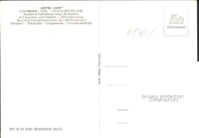 31731240 Hoechst Odenwald Hotel Lust postalisch nicht gelaufen Erhaltung siehe scans KatCode: 11110006437009