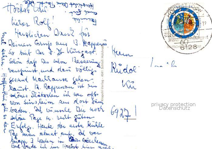 73122161 alte Postkarte Hoechst Odenwald Markt Katholische Kirche Altenwohnheim Freibad Hauptstrasse postalisch gelaufen Erhaltung siehe scans [KathaD81] KatCode: 11110006437009