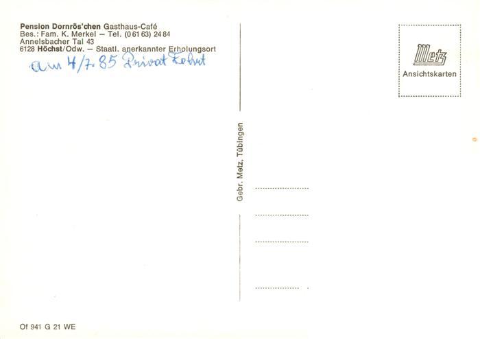 73896664 Hoechst Odenwald Pension Dornroeschen Gasthaus Cafe Hallenbad postalisch nicht gelaufen Erhaltung siehe scans [WerneD78] KatCode: 11110006437009