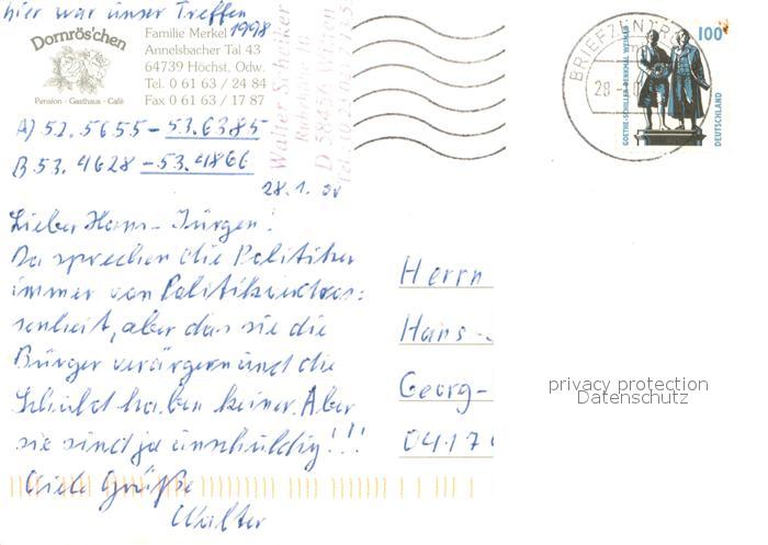 73730734 alte Postkarte Hoechst Odenwald Pension Gasthaus Cafe Dornroeschen postalisch gelaufen Erhaltung siehe scans [FriedD77] KatCode: 11110006437009