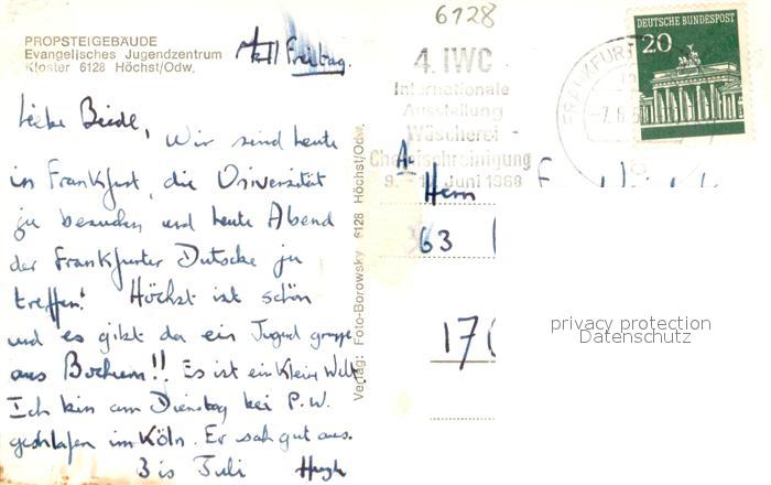 73698076 alte Postkarte Hoechst Odenwald Propsteigebaeude Evangelisches Jugendzentrum postalisch gelaufen Erhaltung siehe scans [FriedD77] KatCode: 11110006437009