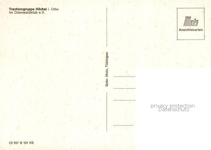 73869492 Hoechst Odenwald Trachtengruppe Hoechst im Odenwaldklub Details postalisch nicht gelaufen Erhaltung siehe scans [WerneD78] KatCode: 11110006437009