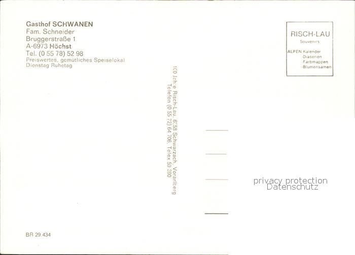 71901832 Hoechst Vorarlberg Gasthaus Schwanen postalisch nicht gelaufen Erhaltung siehe scans KatCode: 11390342080217
