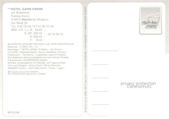 12975347 Hoechst Vorarlberg Hotel Garni Krenn postalisch nicht gelaufen Erhaltung siehe scans [NatalD47] KatCode: 11390342080217
