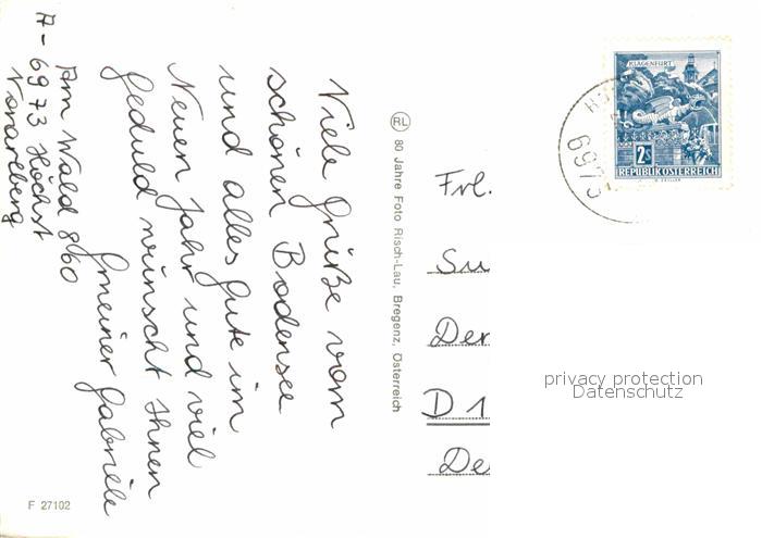 72668500 alte Postkarte Hoechst Vorarlberg Kirche Rohrspitz Fliegeraufnahme postalisch gelaufen Erhaltung siehe scans [AndreD76] KatCode: 11390342080217