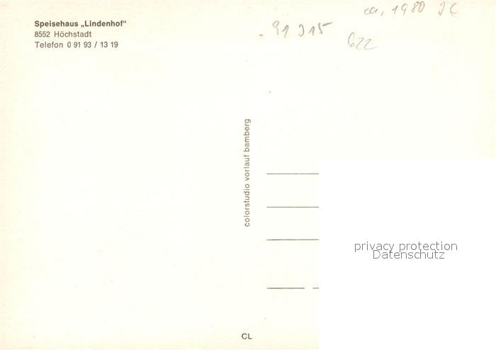 73568835 Hoechstadt Aisch Restaurant Speisehaus Lindenhof postalisch nicht gelaufen Erhaltung siehe scans [FriedD77] KatCode: 11110009572135