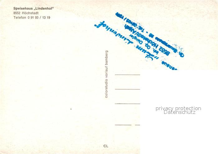 73093995 Hoechstadt Aisch Speisehaus Lindenhof postalisch nicht gelaufen Erhaltung siehe scans [KathaD81] KatCode: 11110009572135