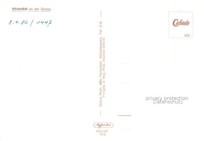 73644101 Hoechstaedt Donau Fliegeraufnahme postalisch nicht gelaufen Erhaltung siehe scans [WerneD78] KatCode: 11110009773139
