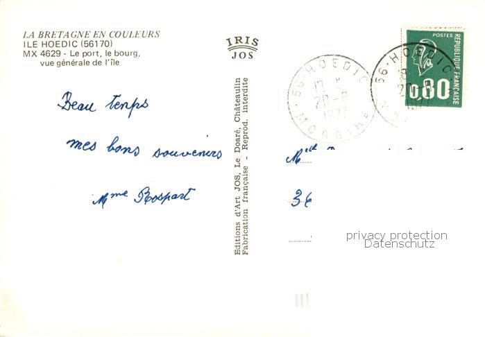 13790575 Hoedic 56 Morbihan Le port Le bourg Vue generale aerinne de l’ile postalisch gelaufen Erhaltung siehe scans [WerneD78] carte postale Wern Katcode 11170056156085