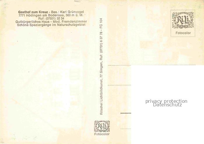 74104844 Hoedingen ueberlingen Bodenseekreis BW Gasthof zum Kreuz Gastraum postalisch gelaufen Erhaltung siehe scans [WerneD78] alte Postkarte Wern Katcode 11110008435059