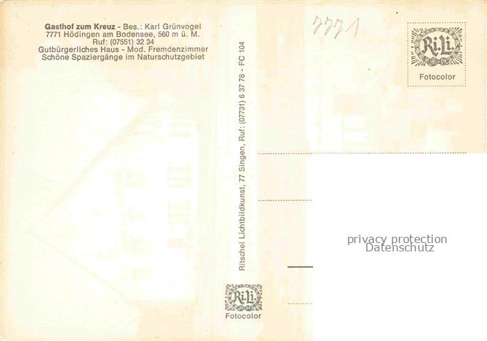 74104125 Hoedingen ueberlingen Bodenseekreis BW Gasthof zum Kreuz Restaurant postalisch nicht gelaufen Erhaltung siehe scans [FriedD77] Frie Katcode 11110008435059