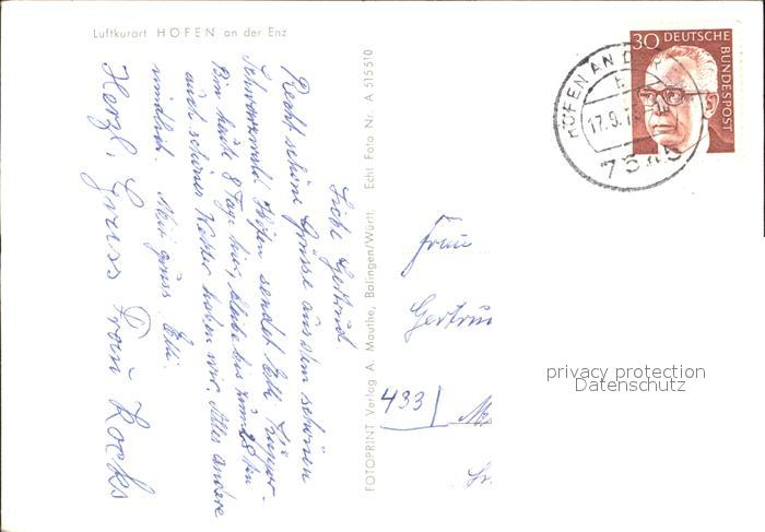 72282918 alte Postkarte Hoefen Enz Fliegeraufnahme postalisch gelaufen Erhaltung siehe scans KatCode: 11110008235035