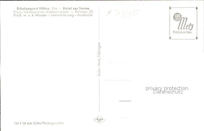 41775314 Hoefen Enz Hotel zur Sonne postalisch nicht gelaufen KatCode: 11110008235035