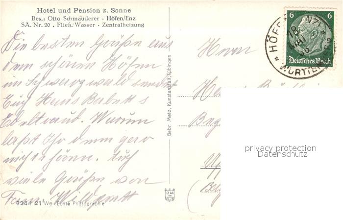73584752 alte Postkarte Hoefen Enz Panorama postalisch gelaufen Erhaltung siehe scans [KathaD81] KatCode: 11110008235035