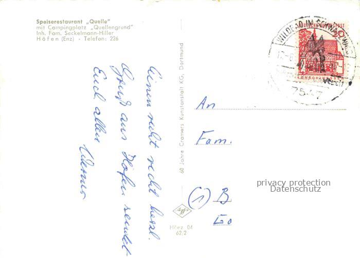 74110356 alte Postkarte Hoefen Enz Restaurant Quelle Campingplatz Gaststube Fliegeraufnahmen postalisch gelaufen Erhaltung siehe scans [WerneD78] KatCode: 11110008235035