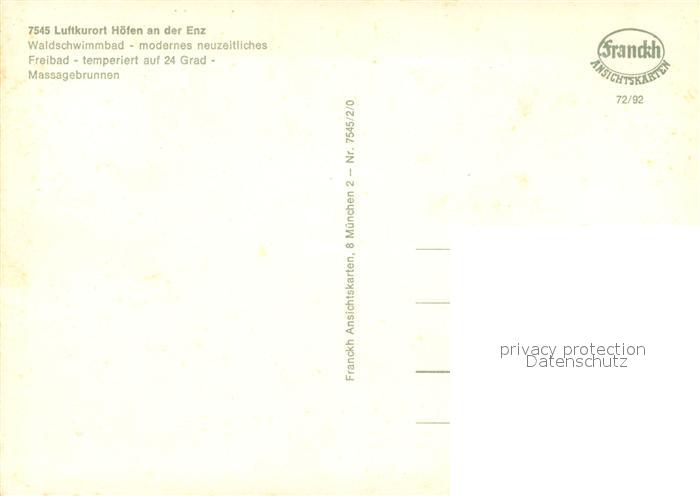 73083357 Hoefen Enz Schwimmbad postalisch nicht gelaufen Erhaltung siehe scans [KathaD81] KatCode: 11110008235035