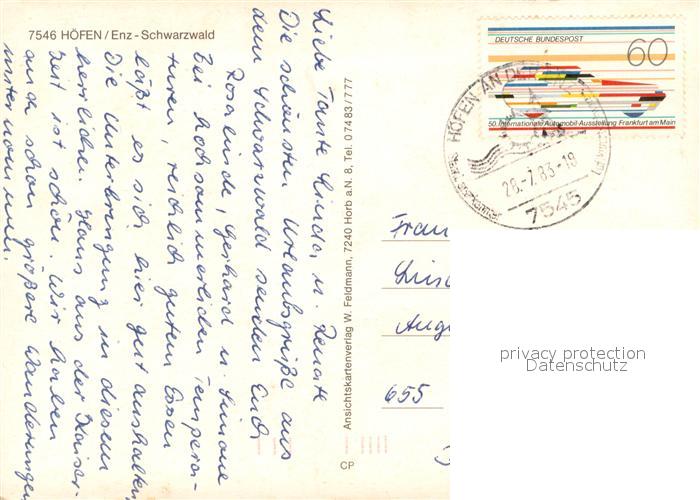 73721720 alte Postkarte Hoefen Enz Villa postalisch gelaufen Erhaltung siehe scans [WerneD78] KatCode: 11110008235035